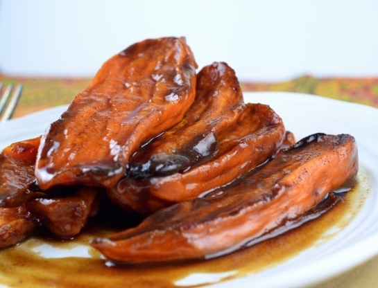 • 8 medium sweet potatoes, baked, peeled and sliced in half lengthwise